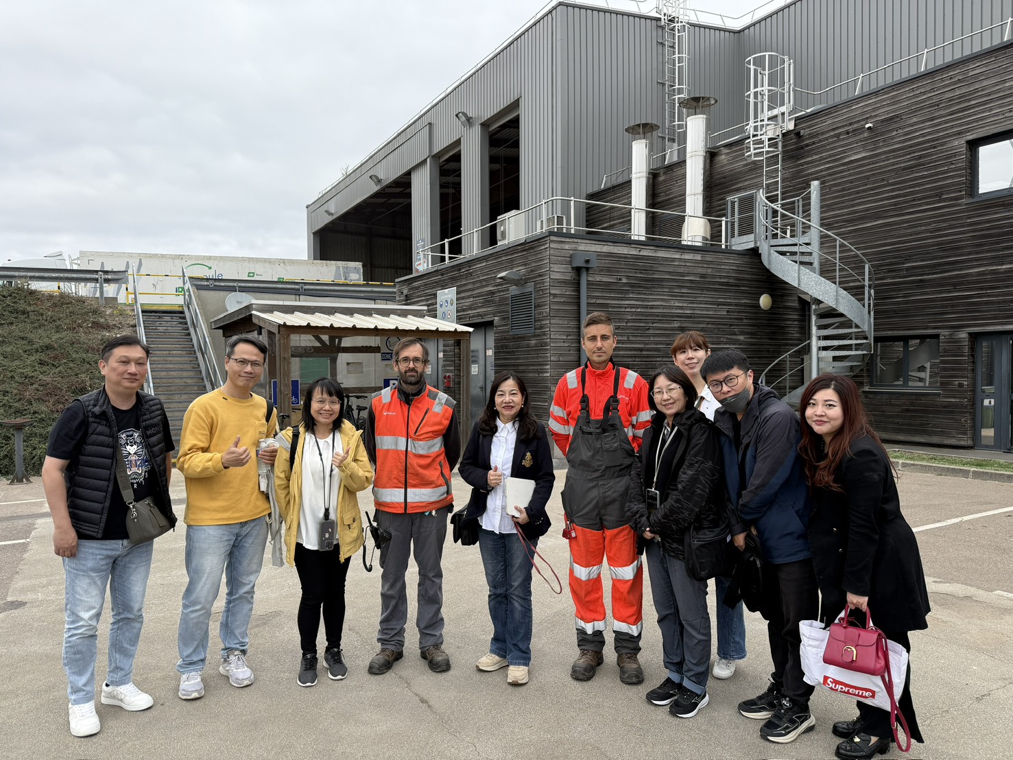 環興科技承辦臺南市政府環境保護局「臺南市永康垃圾資源回收(焚化)廠整建營運前期規劃計畫」,於114年10月間,指派能資部協理林威州及工程師邱品菁,隨同臺南環保局人員前往法國,協助「赴歐洲考察廢棄物處理政策及新型技術觀摩」,參訪周邊焚化廠、資源回收細分類廠、樹枝家具製成固體再生燃料處理廠、廚餘生物處理中心及社區改造資源回收等廢棄物處理設施。